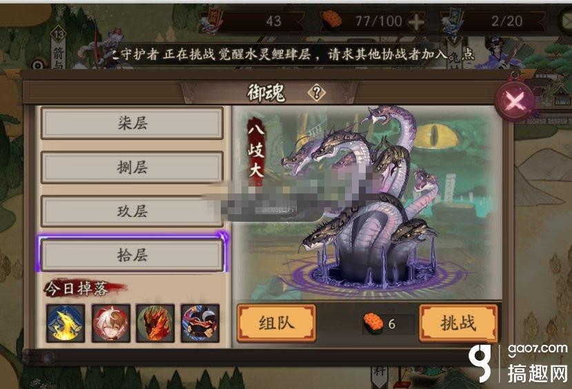 第一关,我可以告诉大家第一关右边的怪血比左边的怪少很多,我次木一个大不暴击就死了,这关最好用最小的代价过,因为我次木是一个大小的都死了,大的血皮所以没付出什么代价,关键是第2关,输出一定要够,尽量不要让青姬放出技能,我也是运气好次木一发大招直接入魂,后来我试过一发大招不暴击椒图血皮,小BOSS大概一半左右血,这时候神乐千万不要放加速,用减伤技能)可以硬吃一轮大招,然后靠小草补起来,因为是多端伤害脆皮尽量把 大生命和防御御魂强高点(我基本没强化打火机和小草的御魂 但是一关满血吃一个大不会死)接下去鸟大飒!飒!飒!次木一个大招结束记住最好控制进下图8火并接进度条最好越多越好,接下来BOSS本也是卡住大家最久的地方,2个2面我测试过一个3W左右血,我次木一个大招暴击留下血皮打了2W9,不死!!!!,这时候神乐加速给另外一个2面接大,然后小鸟飒飒飒,因为本人鸟垃圾,输出全靠次木,就把2个2面打死了,打死了后面我就不说了,BOSS又奶就是吊打就是血多一点。