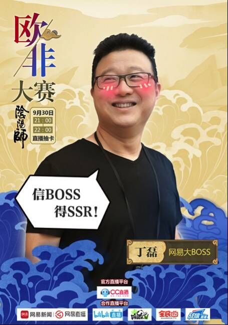 9月30日晚,网易CEO丁磊跨界变身游戏主播,携《阴阳师》主美与红人玩家押切、烽火戏诸侯、白女侠等直播《阴阳师》抽卡比拼,助力《阴阳师》DAU破400万。丁磊担任“非洲大酋长”,与三位萌妹子组成的“欧盟队伍强势人品PK,画符抽卡、语音抽卡双管齐下,到底谁是SSR赢家?