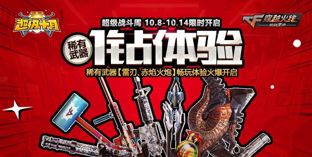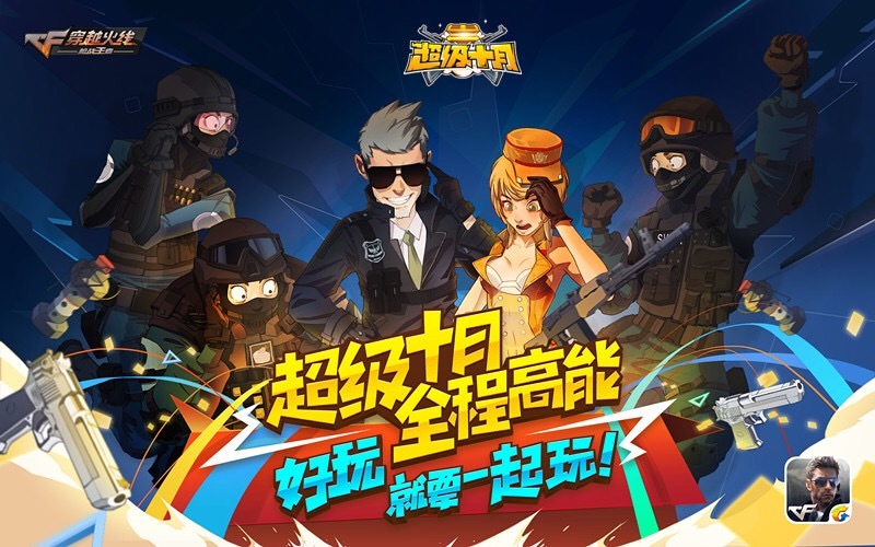 金秋十月,福利不断。“超级战斗周”接下“超级黄金周”的福利棒,为玩家带来以独特的对战活动规则和丰厚的活动礼包,在同样的枪战对局,给玩家带来更多的枪战快感。此后更有加强版好玩节:“超级好玩节”的火爆来袭以及“超级联赛”、“超级古楼兰”活动的震撼推出,活动时间覆盖整个十月,给玩家带来一个超级十月,狂欢金秋。