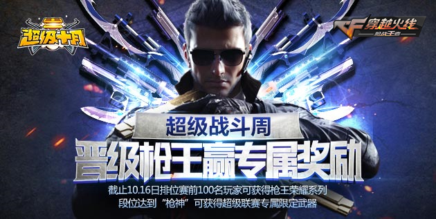 “超级战斗周”的到来势必将给玩家打造更加畅快的枪战体验。活动期间,CF手游将震撼推出排位赛专属奖励,截止10月16日,排位赛进入前100名的玩家即可获得枪王荣耀系列武器,段位达到“枪神”称号的玩家即可获得超级联赛专属限定武器。生命不息,战斗不止,荣耀属于王者。