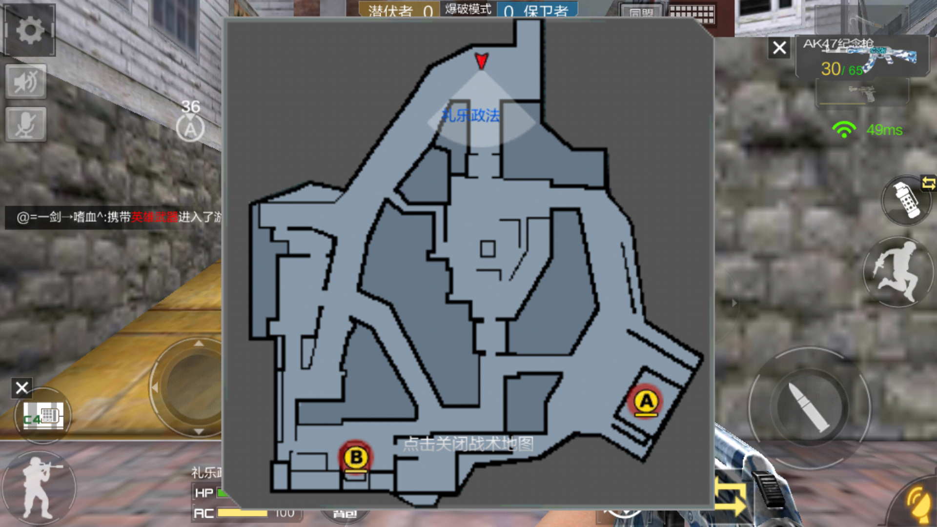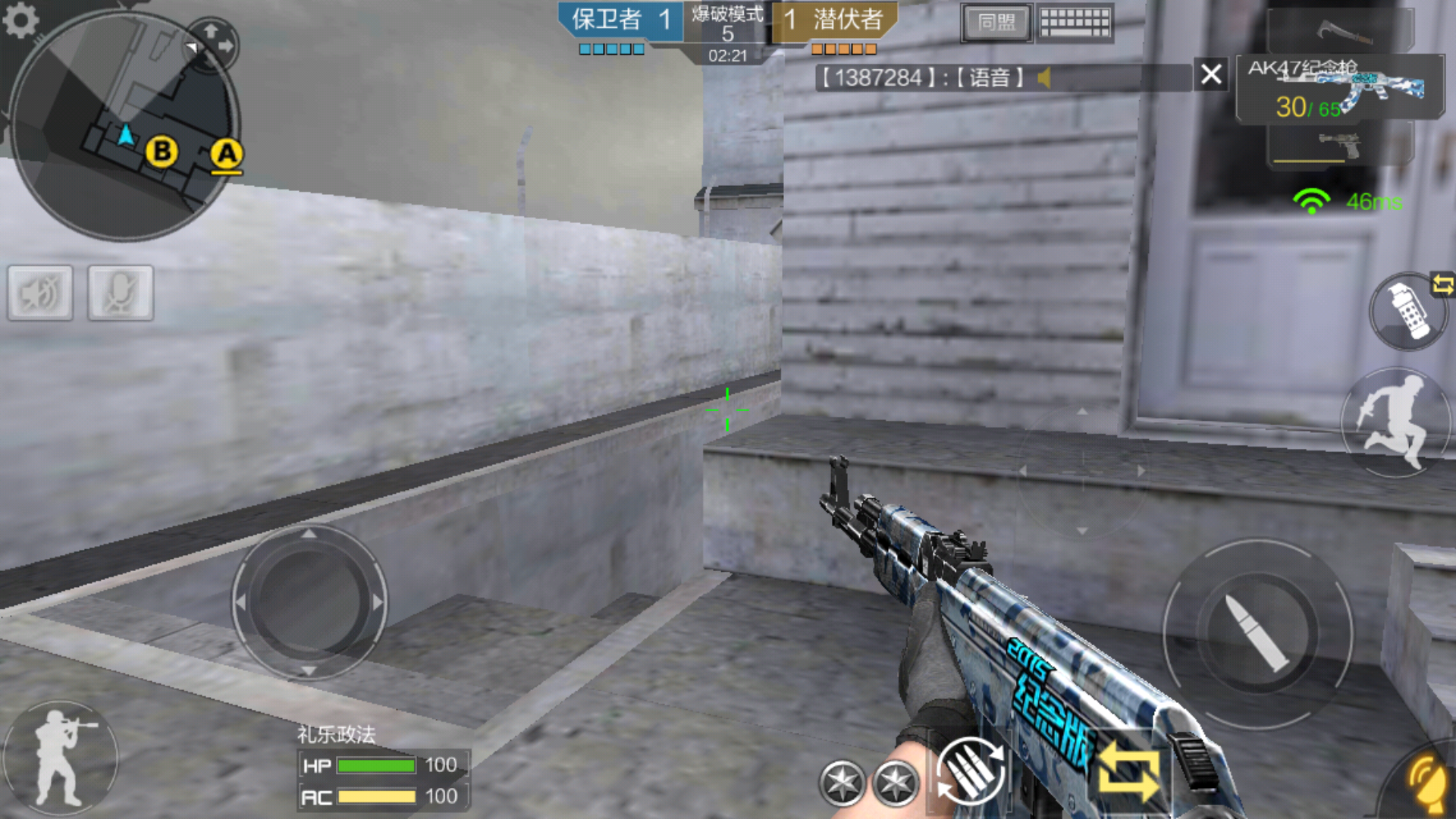 小编被系统分配为保卫者一方,按照上面所说的地图结构特点,保卫者很难两点兼顾。如果不停来回移动,容易被潜伏者突袭,所以小编自觉的选择在墙角处埋伏,因为爆破模式下并不一定要全歼对方,只要在时间结束前没让炸药爆炸就可以判定保卫者获胜了。