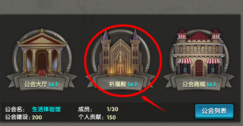 每个公会都有自己的总建设度,玩家花费金钱建设公会,公会获得的一定的建设度,这个建设度就是会长用于升级公会及其他部分的货币。那么个人的捐献也是会得到个人贡献度的,玩家花费金钱建设公会获得的个人属性,可使用贡献兑换各种福利公会内有一个祈福殿这是个神奇的地方,玩家捐献个人贡献,获得道具的地方,祈福殿等级越高,获得的道具越好所以会长大人们努力升级你们的祈福神殿吧!在公会公会商城,玩家使用个人贡献兑换道具的地方,每天都有兑换数量限制,商城等级越高,可兑换的道具价值越高。