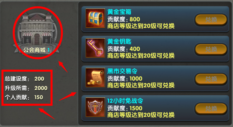 公会不仅可以和战友一起拼杀奋斗,还可以在商店里兑换你想要的物品哦!