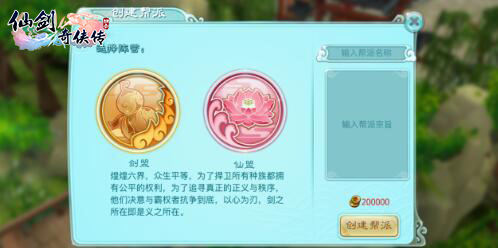 游戏首次引入“仙盟剑盟“阵营概念,是仙剑IP手游中唯一引入阵营概念的产品。游戏中还设计阵营PK地图及各种阵营相关的帮派、好友、组队、公会等竞争玩法。玩家只要达到一定等级,缴纳一定费用后就可以在仙盟、剑盟两大阵营中选择自己支持阵营创建帮派。