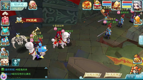 仙盟剑盟,两方对垒必争高下!目前游戏开设了锁妖塔、九黎祠、鬼界这三张地图,等级达到38级的玩家就可以进入其中大展拳脚,既可孤身作战亦可组队齐上阵。单人只剑未免落寞,还是群战团P更为激情!玩家可以与四名同阵营的小伙伴组队作战,多多配合方能更默契,获胜还有机会获得能够合成飞行坐骑的碎片喔!