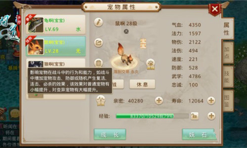 《问道》手游里面宠物有一个属性叫做“亲密度”,顾名思义就是衡量宠物与主人之间关系的属性。除了表面这些我们所能看见的东西之外,亲密度还有着不少隐藏的效果噢。