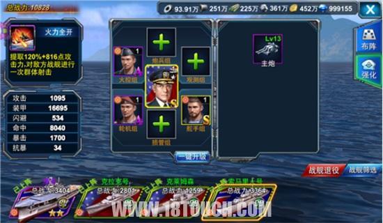 策略元素一向是此类手游的主打项目,其中最为玩家所熟知的就是组合搭配,大到阵型小到个体都需要考量。本作没有在阵型上过多计较,而是把更多精力放在战舰本身。一个成型的战舰,不仅需要强满自身属性,还包括完整的装备体系和适合的船员,然而游戏内没有固定的搭配方式,而是给予玩家更多自主权,战舰发展方向、实际效果完全由玩家决定。