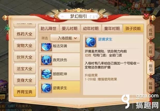 地府孩子:地府孩子不仅仅能够破防,让狮驼的面伤打出更大化的伤害,并且腐尸毒这一恢复技能,也是稳妥性狮驼的不错选择;入场技能推荐使用“逆境求生”,现如今PK场上,暴力法宠开局的场面并不少见,因此,一个可吸收物法伤害的护盾对于辅助型孩子的生存能起到很大的作用,而离场技能方面,灵儿推荐“力战到底”,因为假如选择“百折不挠”的话,极容易被对方千速针对,导致还没出手就被击飞出场。