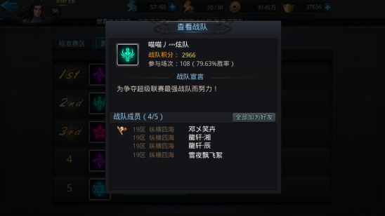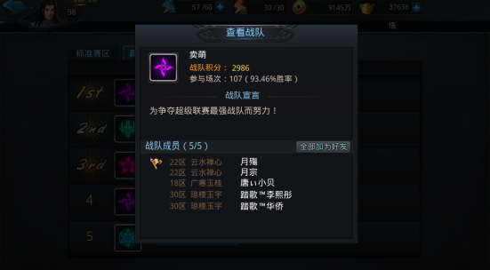 七、喵喵炫队这是一支胜率只有后20名的神奇战队,喵喵血战108场,缺席6场,胜86场败22场,胜率仅有79.63%。但就是这样的一个胜率,他们跌跌撞撞,凭借着不到南墙心不死的执着,他们最终逆袭,从十多名开外,追赶至真实赛区前3,这真是一支既可怕,又可敬的战队。