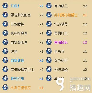 先手找2费以下牌,小斧头、升级、恩佐斯的副官、血帆袭击者、25仔、南海船工