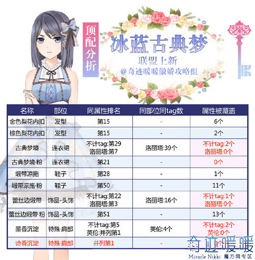 奇迹暖暖冰蓝古典梦套装顶配属性: