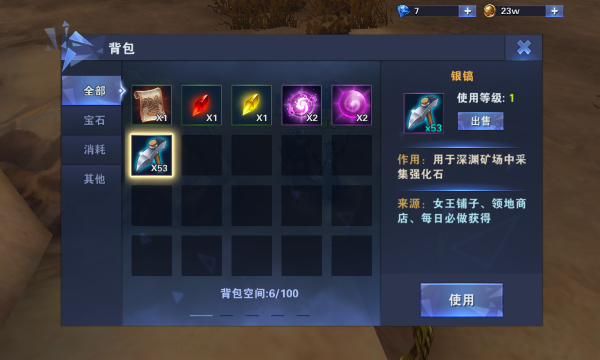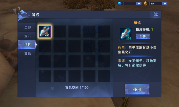 物品进入背包后会自动地进行分类,不会是杂乱无章的摆放。方便小伙伴们快速寻找到自己需要的物品。