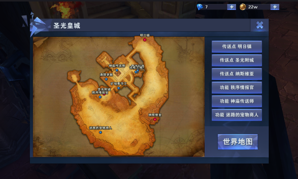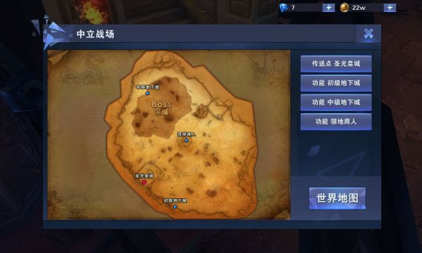 神之荣耀的地图区域主要分为:圣光区域、愤怒区域、中立区域。 这是地图图标,图标位于游戏界面的右上角。点击地图图标后,打开地图,点击要去的地图,然后在地图的右边区域会出现对应地图所有的NPC人物,只需再点击想到达的人物或者是地点既可自动跑到到NPC人物所在地。不同阵营的人是看不到敌方阵营地图上的NPC人物的,当然,如果玩家对游戏熟悉也可以直接点击地图上的位置,也将会自动跑到所点的地点。