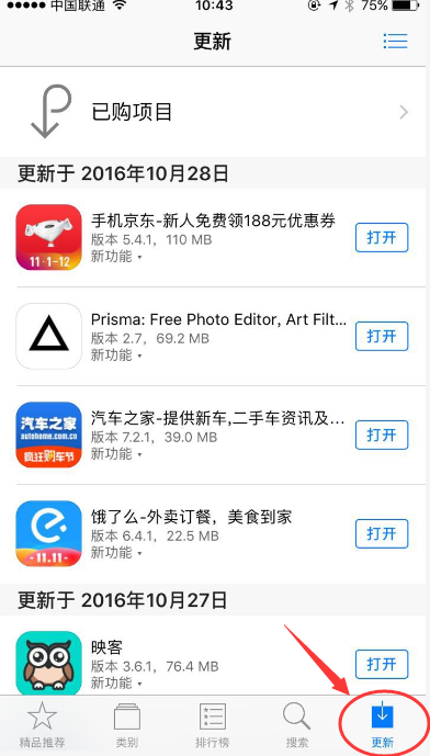 2、 重新打开Appstore,点击“更新”按钮。