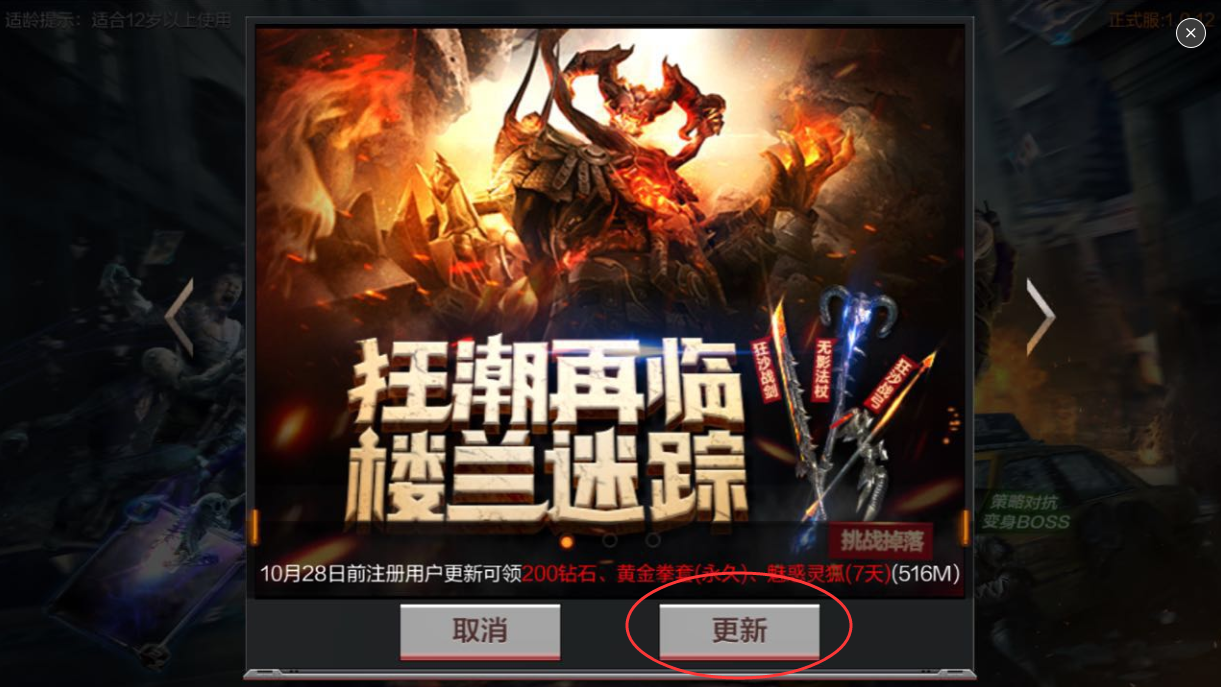 目前游戏内的更新功能存在一定的BUG,如果直接点击更新(如图所示)后,跳转到Appstore有一定几率无法更新。请玩家按照以下操作进行: