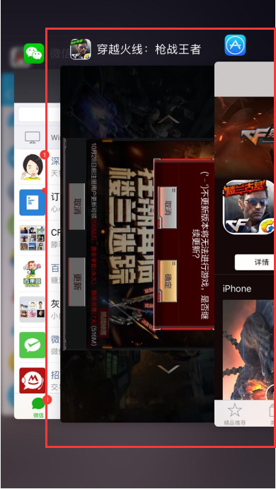 1、 双击Home键,手动结束《穿越火线:枪战王者》和Appstore进程