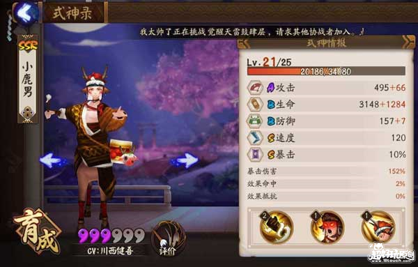 小鹿男是少有的几个,你在斗技中绝对不想看到的式神之一。在会玩的人手里,小鹿男可以快速给队友带来巨大的收益,同时还能保证自身的存活。尤其是和童男配合的时候,真是脏的不要不要的,各种恶心你。小编在斗技遇到这两个家伙的组合,果断选择退出,因为就算能赢,你也要付出几十分钟的时间。如果你有小鹿男,不要犹豫,果断养起来,斗技上分会变得非常容易。