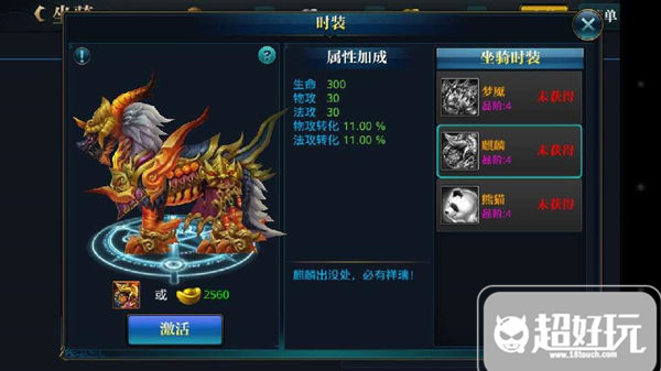 坐骑:坐骑战力的提升主要还是靠坐骑时装,55级的坐骑技能和60级以后的坐骑洗髓。时装的话第七天送梦魇,麒麟和熊猫就需要真金白银购买了。