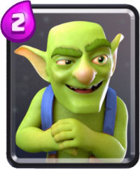 卡牌解析:记得当时看到哥布林的第一眼,我就仿佛看到了光头强一般,实际上却是哥布林和光头强的长相还是蛮像的,光光的头顶,一脸怪怪的眼神,嘻嘻,其实哥布林这张卡牌在前期还是一张比较好用的卡,哥布林需要2点费用,即可召唤3只移动速度很快,并且伤害也是比较高的哥布林,这些哥布林无论是在辅助攻击还是在防守上都是一个不错的选择。