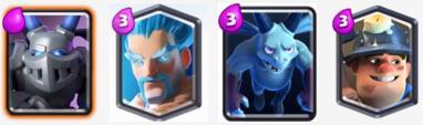 矿工:矿工通常用来挖防御塔、采集器以及公主的,这套卡组中有箭雨,所以矿工在此卡组中是配合天狗一起消耗对面防御塔的。