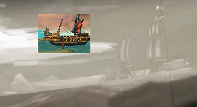 二、官推发布第二篇加基森晚报时搭配的动图,最后镜头上出现的船是一艘海盗船,这就是位于荆棘谷最南边的血帆海盗的船。