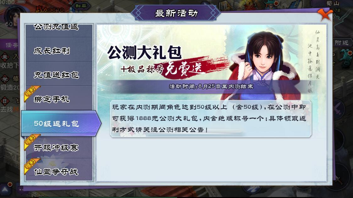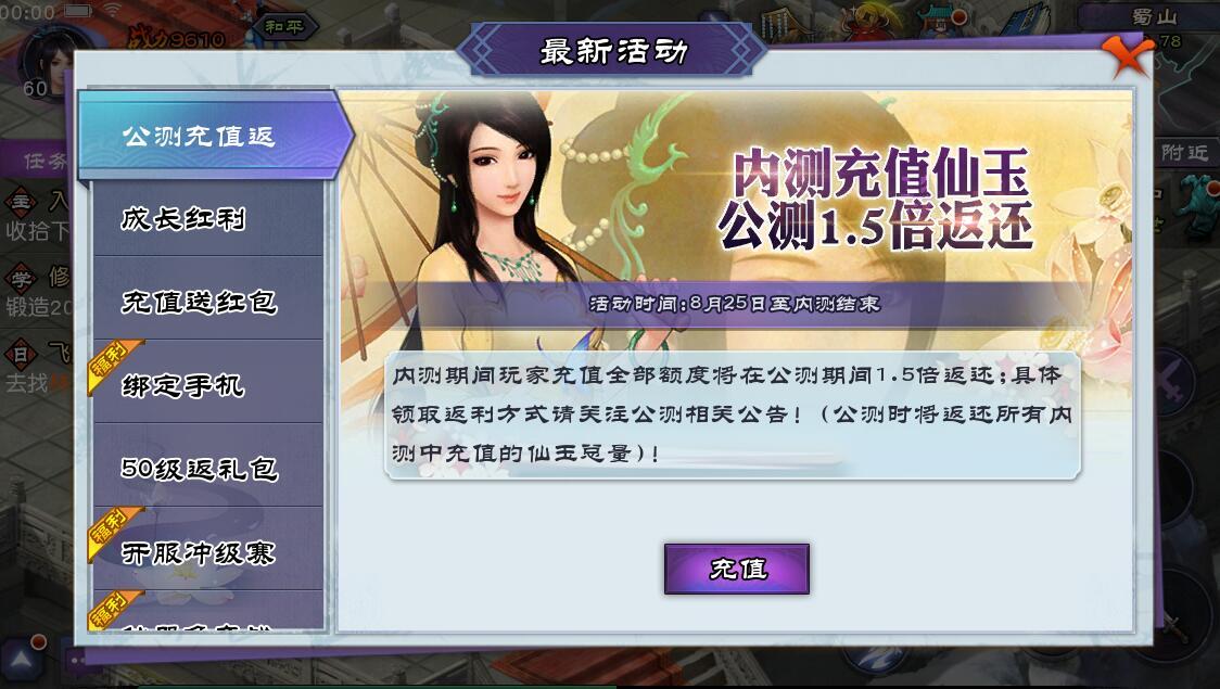 内测期间玩家充值全部额度将在公测期间1.5倍返还哦~公测时将返还所有内测中充值的仙玉总量~