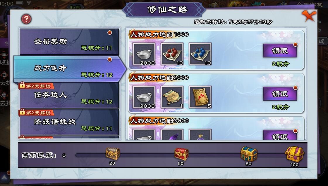 修仙路上,只要达到指定目标,就能轻轻松松拿大礼包哦~