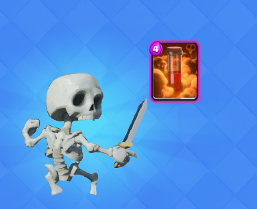 克制效果:毒药现在持续伤害不低,但是对血量高的卡牌效果低,比如遇到了血量较高的人海卡野蛮人或者三个火枪手时现在是无法让其残血,最多是耗一点血。除非这些卡牌在毒药的攻击范围中不走。