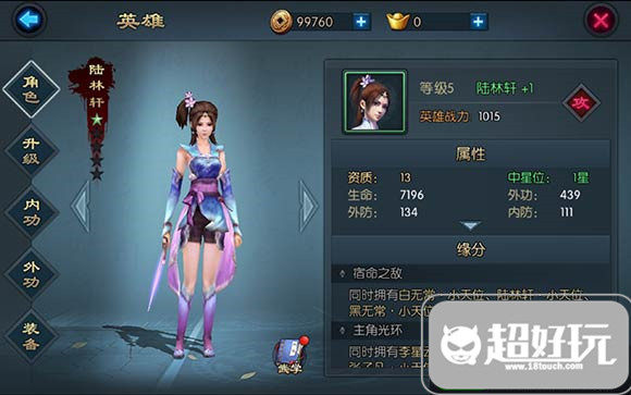 陆林轩属于比较平衡的英雄,单攻和群攻能力都相当不错,唯一的弱点是防御力较低,因此在国战中比较依赖队友,同时在操作上要求也比其他三位小伙伴更高。