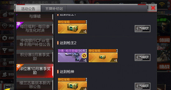 新版本往往也代表着新赛季,排位赛10月赛季即将在11月7日结束,你已经是枪神了吗?在这个赛季,赛季奖励的发放形式做出了一次大的调整,每个阶段的丰厚奖励都会在达到相符的段位后立刻获得。这么多段位奖励,现在不拿,11月就出新的啦!让我们加快脚步,向着枪神再次冲锋!