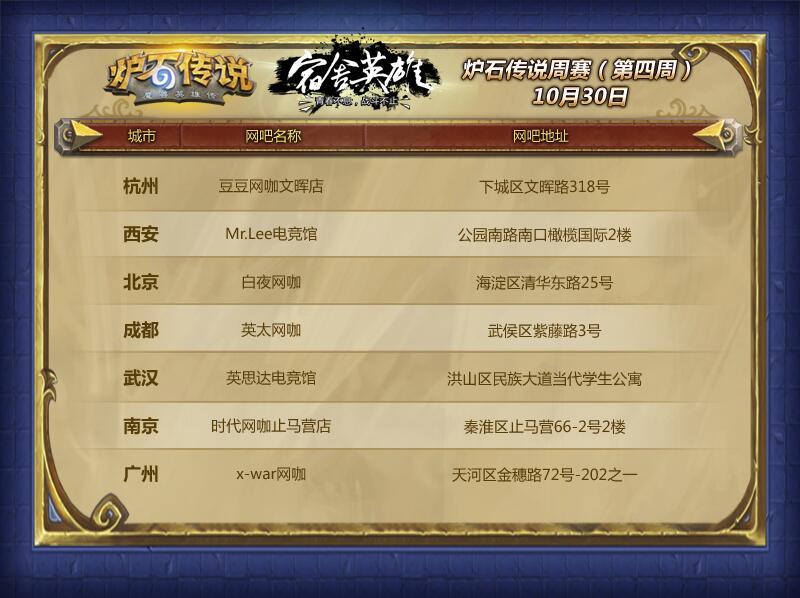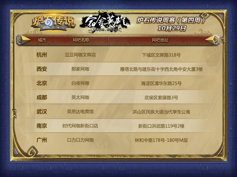 2016《炉石传说》宿舍英雄秋季赛第四周的比赛将于10月29日-30日在全国各大城市同时打响,这里是比赛相关的一些注意事项。