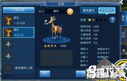 灵兽提升悟性和修为需要达到等级60,开启修悟栏。