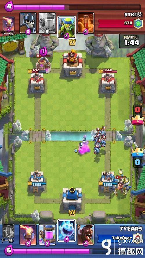 有时候开场手牌不好起手进攻或防守,然而下一张卡牌就是自己想用卡牌,如果这时候花大量的圣水使用手牌的话,可能剩余的圣水不足以使用新的手牌,1圣水的骷髅兵就能解决这个问题,耗费1圣水就能用剩余圣水使用心仪的卡牌,如何随机应变使用手牌是很重要的!
