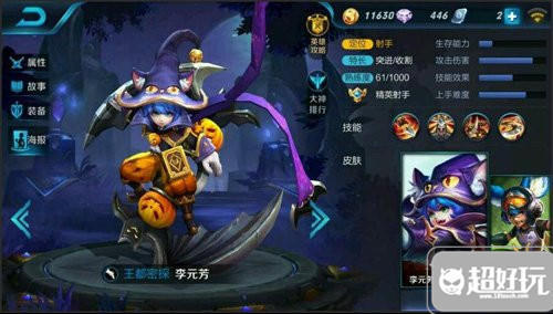 一技能:李元芳的万圣节皮肤会丢出南瓜,南瓜会在敌方英雄上缠绕。