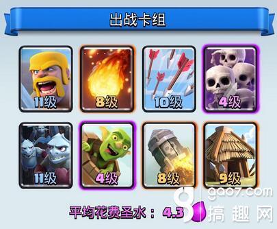 哥布林小屋:核心卡牌,哥布林小屋也是以蹭血为主,通过源源不断生产的哥布林投矛手来不断蹭对面防御塔的血量。