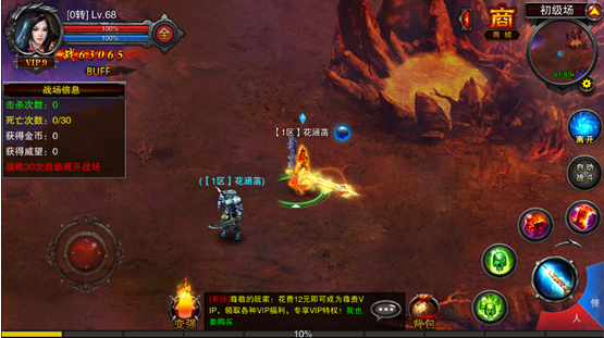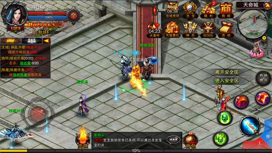 45级及45级以上的玩家在12:00-24:00可以通过天命城NPC群雄争战消耗金币进入战场,每日可以进入10次,初级场:45级—1转,100000金币。高级场:2转—3转,200000金币。自由场:45级,200000金币。战场中可以随意PK,并且每隔一定的时间可以随机地点输出宝箱,随机出现各种珍稀奖励。根据杀人数,获得额外大量的金币和威望。注意,死亡
