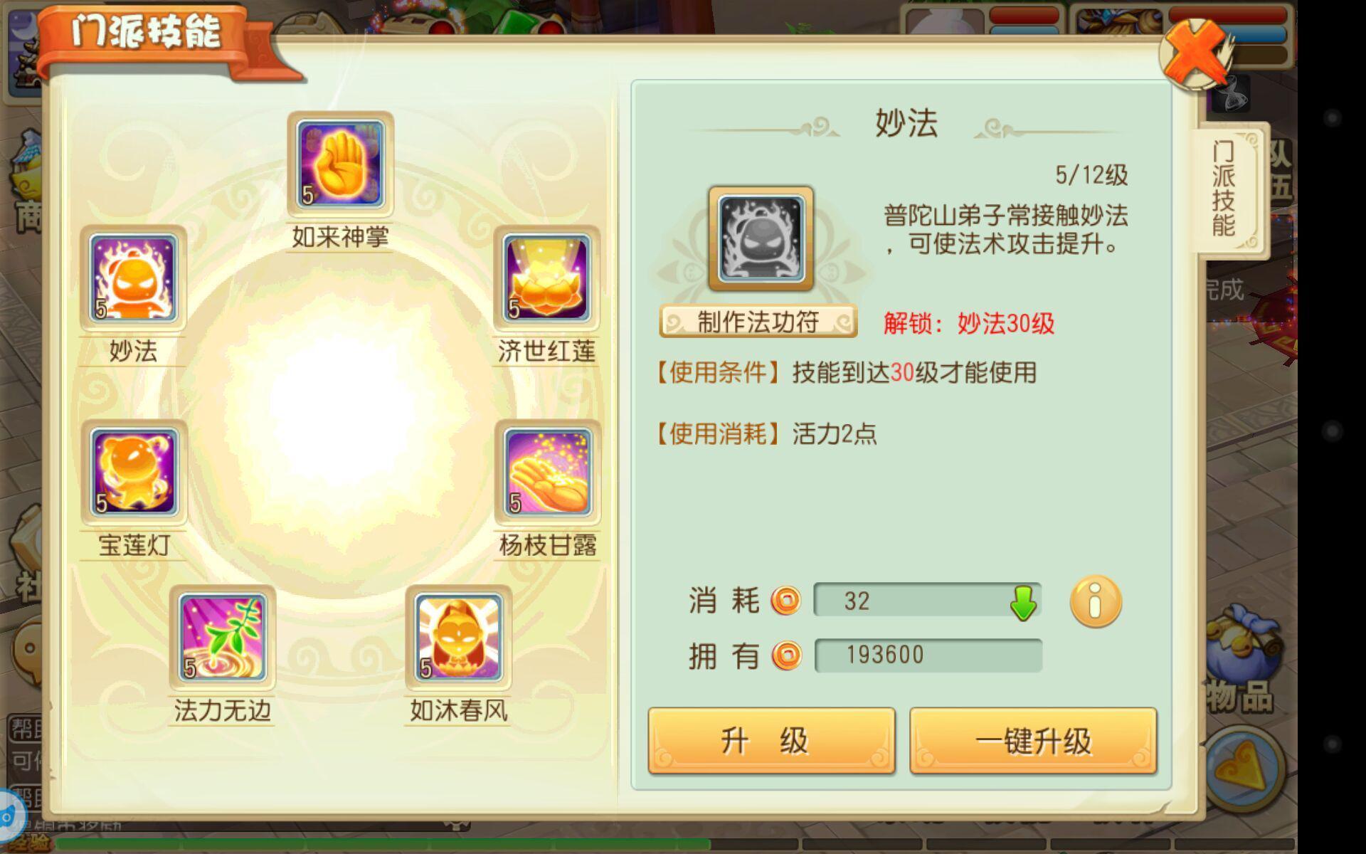 技能功效:此技能为普陀山基础技能,学习门派其他技能必须先学习此技能