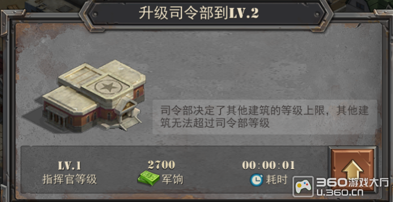 ★司令部:所有建筑的核心,所有建筑的等级无法高于司令部,同时其他建筑的开启随司令部等级开放;