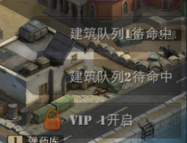 ★建筑升级需要一定的时间,具体时间会显示在建筑队列中,如建筑队列已满则无法升级其他建筑,建筑列表随VIP等级开启;