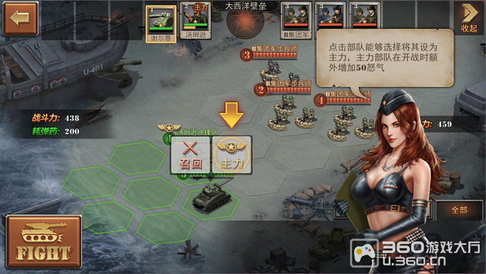 设置主力,可以为部队开战时增加50点怒气,比其它没有设置主力的部队更快的释放大招,增加作战能力达到出其不意的效果!