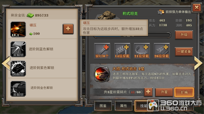 部队进阶后开启,部队技能等级无法超过部队当前等级,提升技能等级可大幅提升部队的战力!