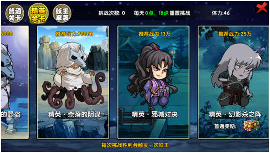 冒险中除了普通副本,就是精英关卡和妖王来袭。之所以一块来说是因为这两个是连在一块的,精英关卡比普通关卡要少很多。