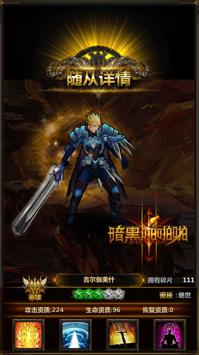 有了新战场,当然也要有新英雄哦!新版《暗黑啪啪啪》中将引进15位英姿飒爽的随从,是不是要给辛勤工作的美术GG加鸡腿啊!其中一席蓝色盔甲的吉尔伽美什尤为亮眼,几乎完美的攻击实力加上在巅峰战场上的“终结”爆发,都让对手不寒而栗,而且他将是《暗黑啪啪啪》中首批“绝世”品质的随从之一。另外,魔王之王撒旦、第一使徒彼得、第十二使徒犹大等都将惊艳亮相!“绝世”时代已经来临,啪友们,准备好了吗?