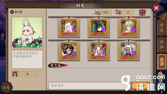 玩家还可以把自己拥有的式神放在个人空间中展示,好友可以围观他的式神等级、星级以及御魂装备等,还能够在空间下留言吐槽,成功打造了阴阳师游戏内的“朋友圈”。