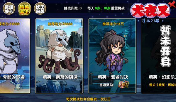 3.精英关卡和BOSS:玩家在通过一定关卡后可以开启精英关卡的玩法,在通过精英关卡后,就会出现一个“妖王”,初次成功击退妖王后就可以获得大量物资,而在击退一定次数的妖王后还可以召唤更为强大的妖王来获得稀有道具。