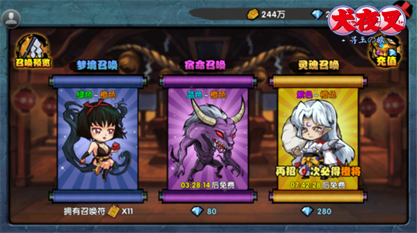 前期在召唤所里,玩家能选择的一般是梦境召唤,不过积攒到300多钻石(还是比较简单的)后,一定要抽一把宿命和灵魂,因为首次花钱召唤能出紫将和橙将。