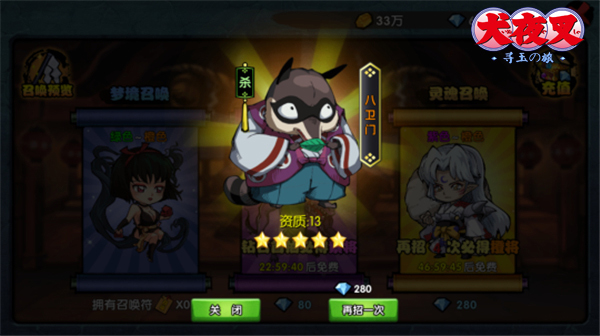 虽然大多数是四天王、四豹猫、蛾天丸、蜘蛛头之类的紫将,以及菖蒲、八卫门、亲方、野狼干等等资质只有13的橙将,不过聊胜于无,这些高爆率的普通妖怪(人物)还是能够陪伴玩家度过难熬的开荒时期的。