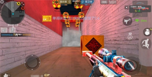 右侧通往b点位置的通道入口处,利用墙体的掩护与自身的移动来击杀从此处进攻的敌人,狙击枪能够很容易的穿透木箱,所以在此处进行进攻的敌人相当于根本没有障碍物来进行躲避,一枪就能够轻轻松松将其击杀。