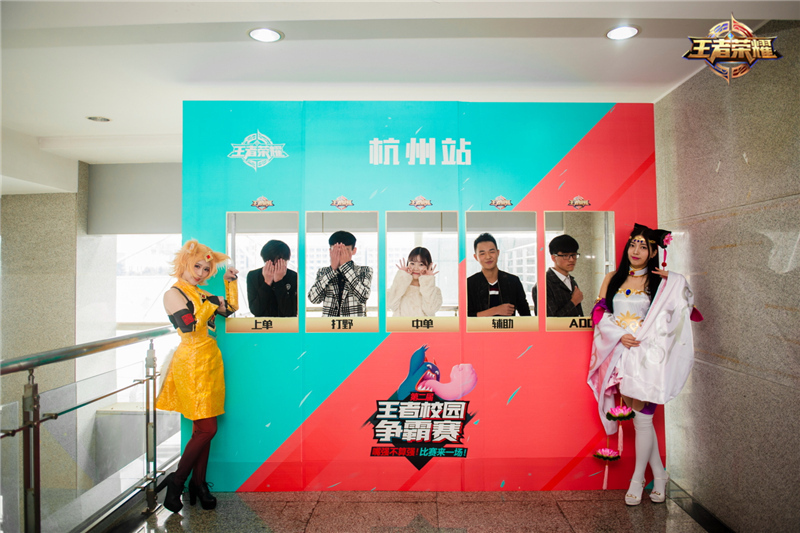 另一方面,王者荣耀中倍受年轻玩家们追捧的荆轲大姐头、小乔妹妹、妲己宝宝、孙尚香、貂蝉等英雄也以Coser的形象出现在赛场中与学子们热情互动。调皮的学子们更是请求Coser们配合,展开抢镜大戏!上单、打野、中单、辅助、ADC……看我们的团队,个个能量满满。王者荣耀火热的电竞对决从来不会将学子们青春热情燃烧殆尽,而是会愈燃愈盛,强到突破天际!