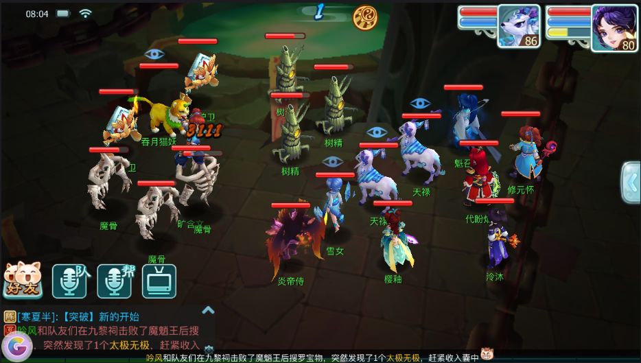 集火BOSS,不然会一直召唤,仙霞和夜叉点BOSS群攻就可以了。雪妖摄灵后会逃跑五灵第一时间封住,不然它会封你。